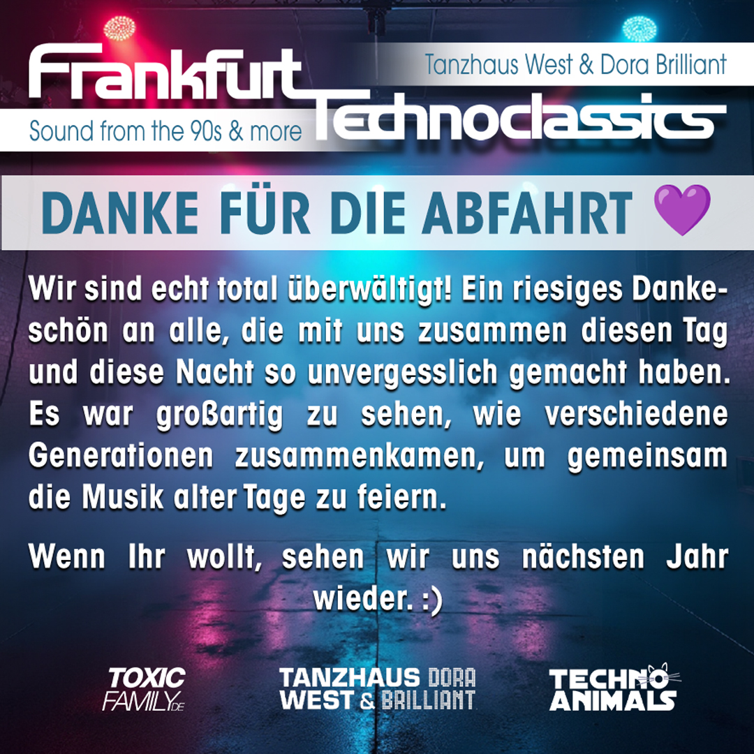 Für all dies steht die Frankfurt Technoclassics, die einmal im Jahr im Tanzhaus West stattfindet.